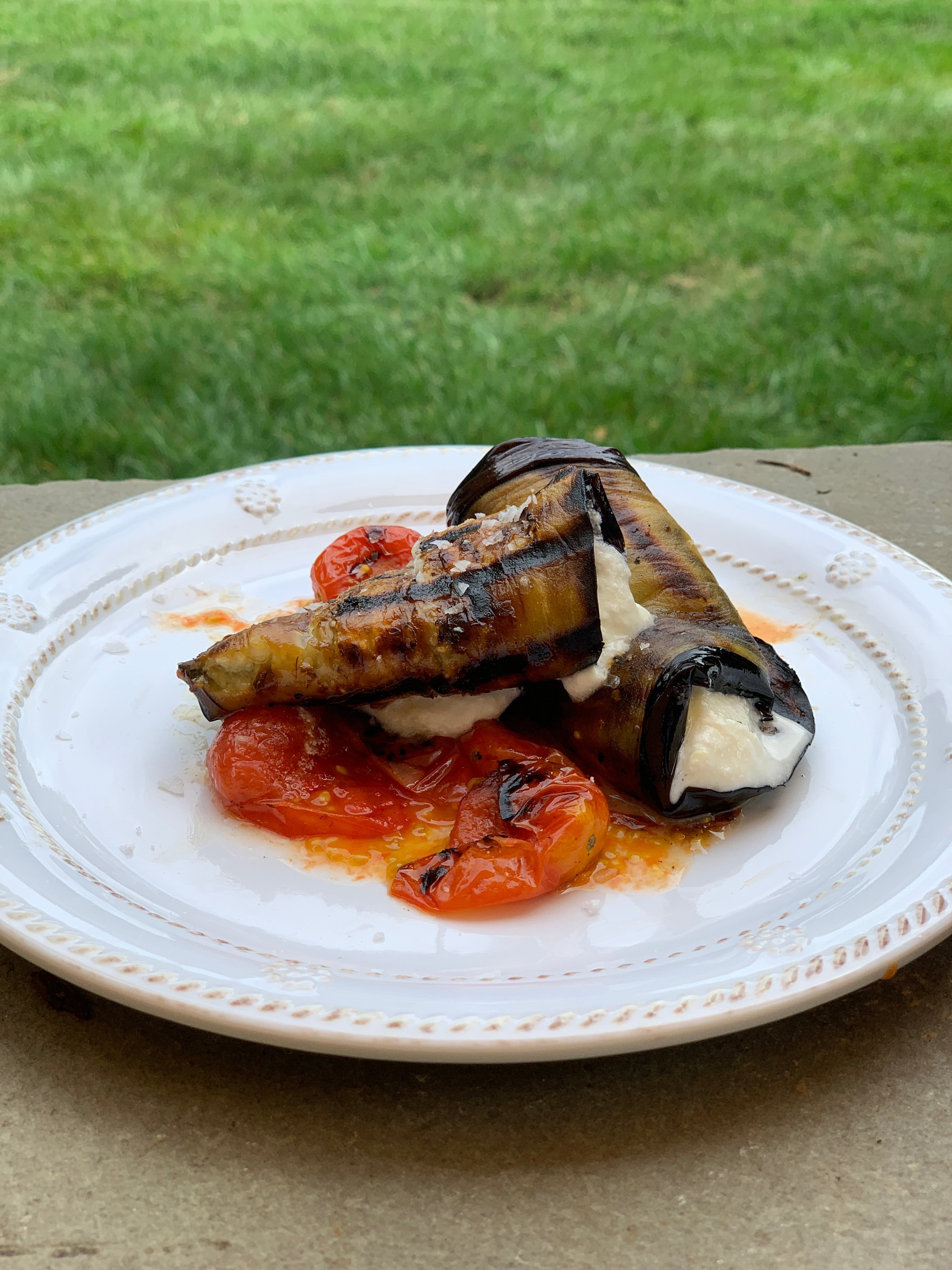 This dish plays with texture and temperature: smoky grilled eggplant, creamy lemon-basil ricotta, and a light, crushed tomato pan sauce. It’s structured enough to plate for guests, but unfussy enough for lunch outside.